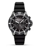 The Emporio Armani AR11515 is a men’s watch from the Diver series. It features a 43mm stainless steel case, a green dial with a sunray finish, and is powered by a Japan quartz movement. The watch includes chronograph functionality and a black silicone strap, making it suitable for both business and leisure. The case thickness is 12mm.