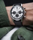 Our Marlin Chronograph Tachymeter boasts the distinction of being the first chronograph in our Marlin line, as well as the first Marlin powered by a quartz movement. This beautifully detailed rendition features a tachymeter index along its outer minute track to measure speed, a unique date window placement, and a natural leather strap ethically sourced from the Leather Working Group (LWG). Though its build breaks new ground in our watchmaking heritage, this timepiece retains the classic Marlin features with a sturdy stainless-steel case, domed acrylic crystal lens, and retro-style square markers at 3, 9, and 12 o’clock.