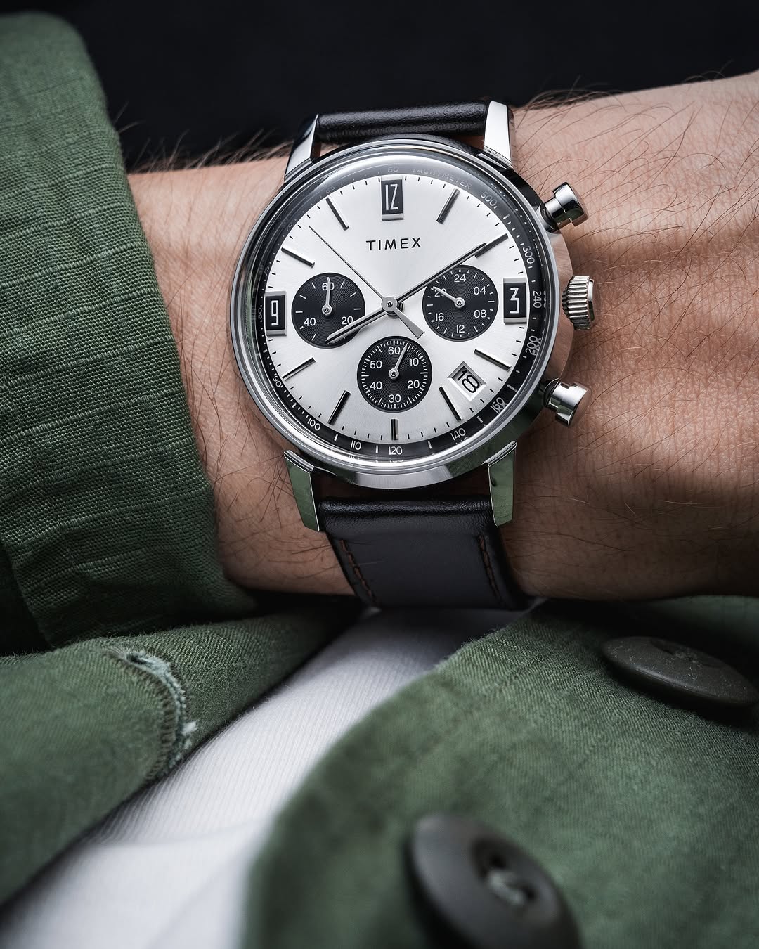 Timex Marlin® Chronograph Tachymeter Leather Strap Watch | TW2W10300